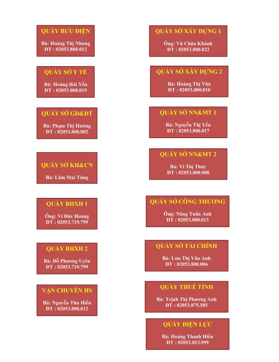 Danh bạ các Trung tâm PVHCC trong tỉnh