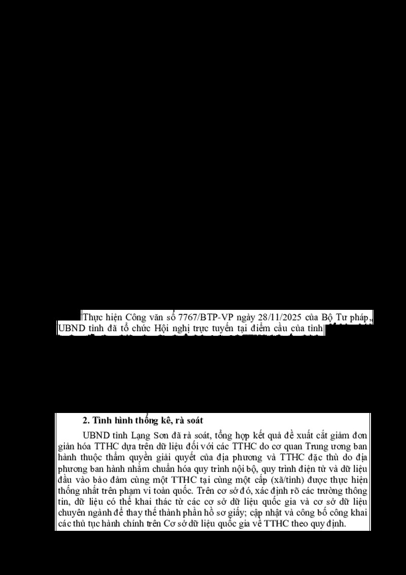 V/v báo cáo kết quả rà soát TTHC thuộc thẩm quyền giải quyết của địa phương