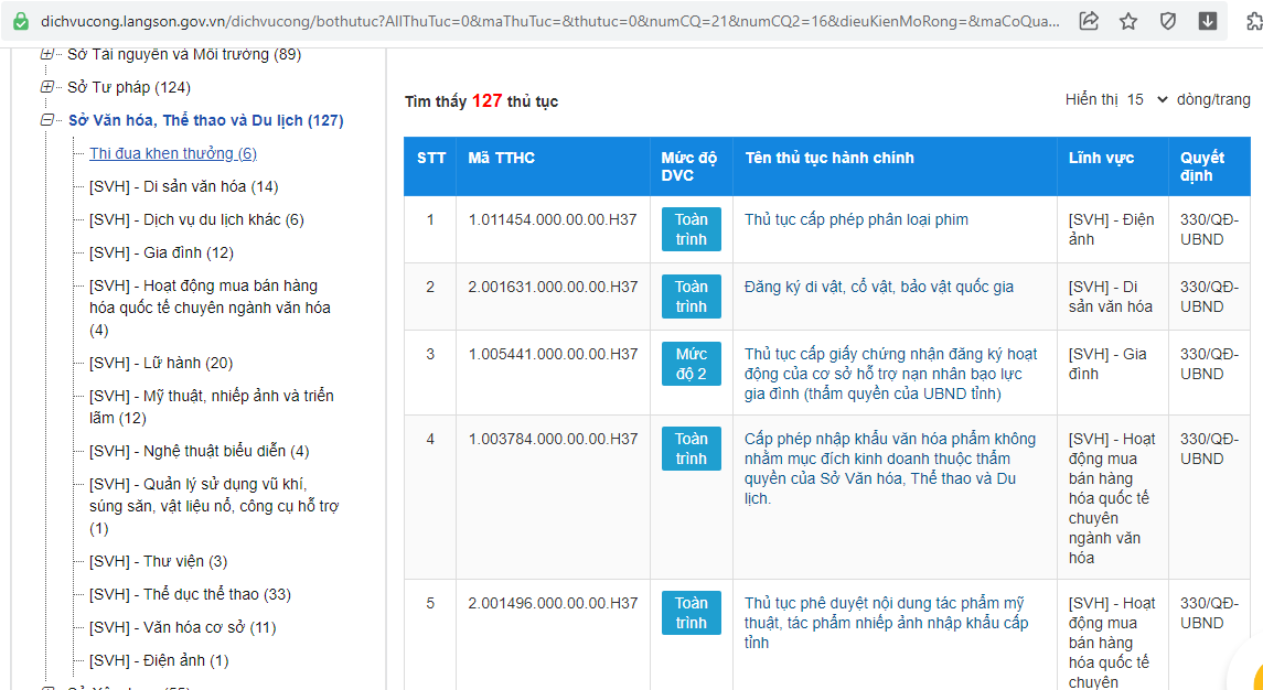 Chủ tịch UBND tỉnh đã ban hành Quyết định công bố Danh mục TTHC chuẩn hóa và phê duyệt quy trình nội bộ trong giải quyết TTHC theo cơ chế một cửa, một cửa liên thông thuộc thẩm quyền giải quyết của Sở Văn hóa, Thể thao và Du lịch, UBND cấp huyện, UBND cấp xã tỉnh Lạng Sơn (Quyết định số 330/QĐ-UBND ngày 01/3/2023).