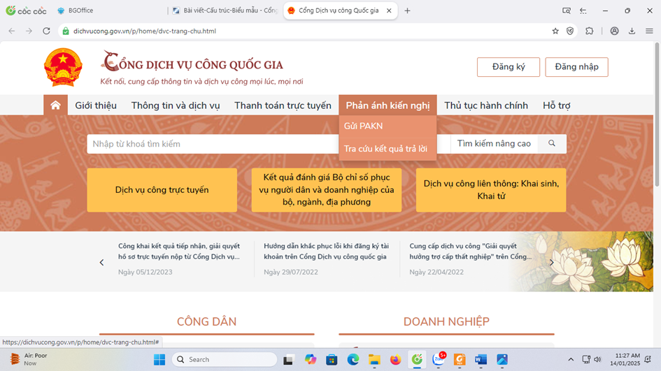 Tiếp tục nâng cao hiệu quả việc tiếp nhận, giải quyết các phản ánh, kiến nghị của người dân, doanh nghiệp trong quá trình giải quyết thủ tục hành chính của các cơ quan hành chính các cấp cần tăng cường trách nhiệm giải trình, thực hiện tốt công tác tiếp nhận, xử lý phản ánh, kiến nghị về quy định hành chính để kịp thời xử lý các khó khăn, vướng mắc, bất cập cho người dân, doanh nghiệp. Chấm dứt tình trạng đùn đẩy trách nhiệm, không xử lý hoặc kéo dài thời gian xử lý; xử lý nghiêm cán bộ, công chức, viên chức có thái độ, hành vi tiêu cực, sách nhiễu trong thi hành công vụ, giải quyết thủ tục hành chính; đẩy mạnh công tác tuyên truyền đến người dân, doanh nghiệp biết, lựa chọn và sử dụng kênh phản ánh, kiến nghị tiếp nhận trên Cổng dịch vụ công quốc gia (truy cập Cổng dịch vụ công quốc gia, địa chỉ: https://dichvucong.gov.vn, mục Phản ánh, kiến nghị để gửi phản ánh, kiến nghị)./.