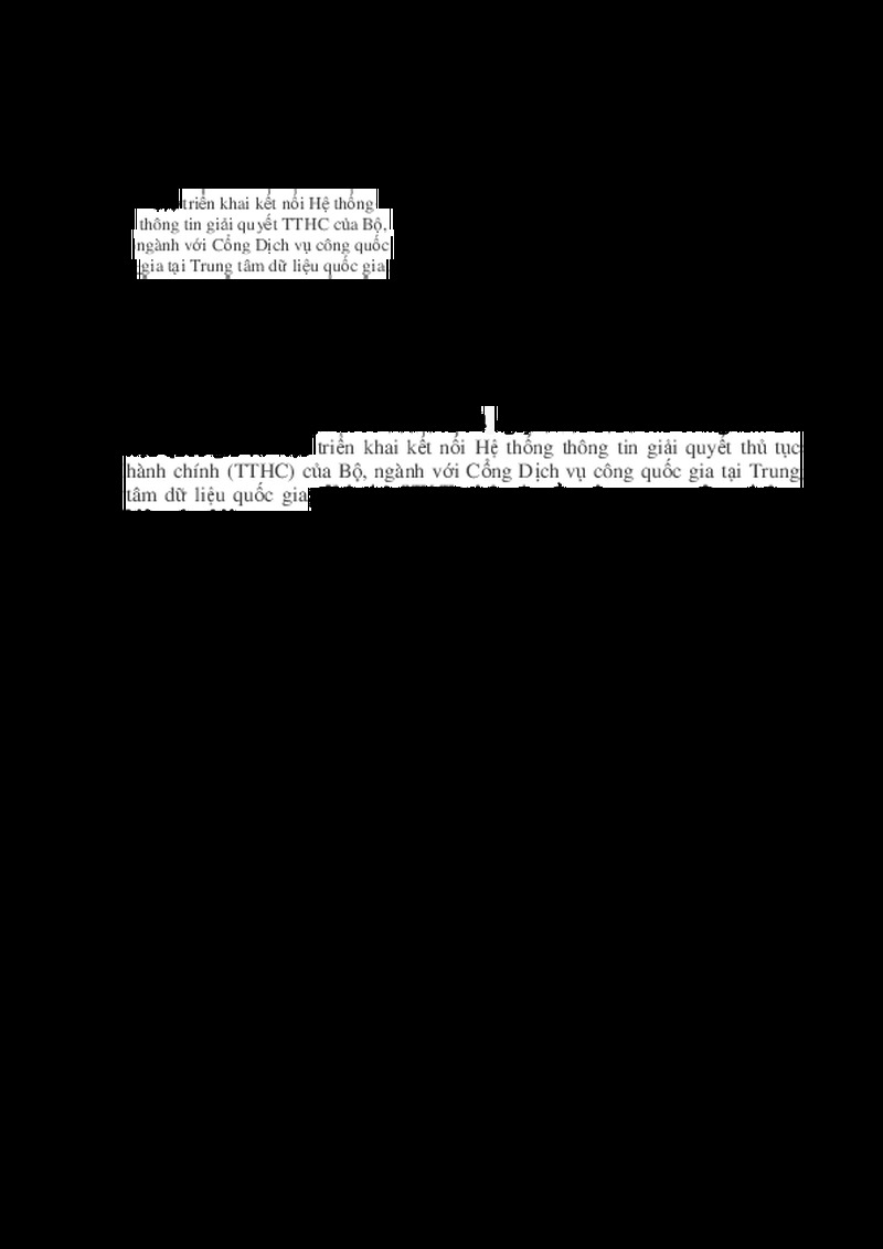 | Tiêu đề văn bản | V/v triển khai kết nối Hệ thống thông tin giải quyết TTHC của Bộ, ngành với Cổng Dịch vụ công quốc gia tại Trung tâm dữ liệu quốc gia | ||